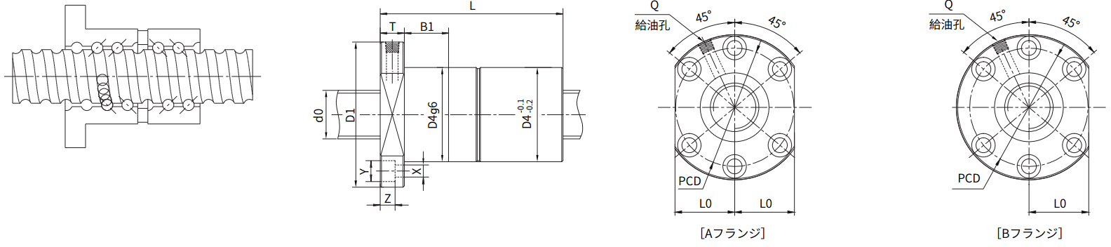 | do | Ph | DW | 列×巻 | KN | KN | N/μm | D1 | D4(g6) | L | T | B1 | X×Y×Z | PCD | Q | Lo | dxf | IGES | STEP | ||